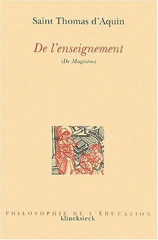 La pensee educative du Moyen Age s'etait ouverte avec le De Magistro de saint Augustin; elle s'acheve avec un autre De Magistro, celui de saint Thomas d'Aquin. Si l'inspiration n'est plus platonicienne, mais aristotelicienne, elle temoigne d'une rigueur et d'une vivacite remarquables. En s'appuyant sur une theorie pour partie empiriste de la connaissance, saint Thomas maintient l'idee qu'il n'y a qu'un maitre, le " maitre interieur "; mais pour que ce dernier revele sa verite au disciple, l'experience semble un passage oblige. Il a paru interessant de proposer au lecteur latiniste, le texte original a la suite de la traduction.