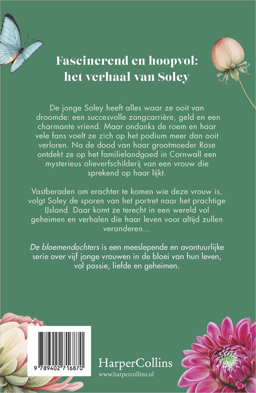 Laat je meevoeren door De lentedochter, deel twee van de avontuurlijke familiesaga van Tessa Collins over vijf vrouwen, vijf continenten en één groot familiegeheim. De jonge Soley heeft alles waar ze ooit van droomde: een succesvolle zangcarrière, geld en een charmante vriend. Maar ondanks de roem en haar vele fans voelt ze zich op het podium meer dan ooit verloren. Na de dood van haar grootmoeder Rose ontdekt ze op het familielandgoed in Cornwall een mysterieus olieverfschilderij van een vrouw die sprekend op haar lijkt. Vastberaden om erachter te komen wie deze vrouw is, volgt Soley de sporen van het portret naar het prachtige IJsland. Daar komt ze terecht in een wereld vol geheimen en verhalen die haar leven voor altijd zullen veranderen… De bloemendochters is een meeslepende en avontuurlijke serie over vijf jonge vrouwen in de bloei van hun leven, vol passie, liefde en geheimen.