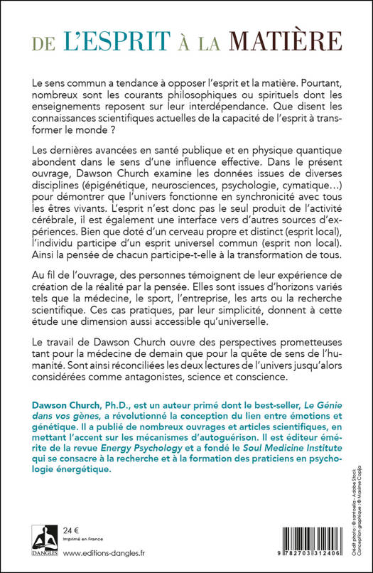 Que disent les connaissances scientifiques actuelles de la capacité de l'esprit à transformer le monde ? Les dernières avancées en santé publique et en physique quantique attestent d'une influence effective. Dawson Church examine les données issues de diverses disciplines (épigénétique, neurosciences, psychologie…) pour démontrer que l'univers fonctionne en synchronicité avec tous les êtres vivants. L'esprit n'est donc pas le seul produit de l'activité cérébrale, il est également une interface vers d'autres sources d'expériences. Bien que doté d'un cerveau propre et distinct (esprit local), l'individu participe d'un esprit universel commun (esprit non local). Ainsi, la pensée de chacun participe-t-elle à la transformation de tous. Des témoignages de divers horizons donnent à cette étude une dimension aussi accessible qu'universelle. Le travail de Dawson Church ouvre des perspectives prometteuses tant pour la médecine de demain que pour la quête de sens de l'humanité.