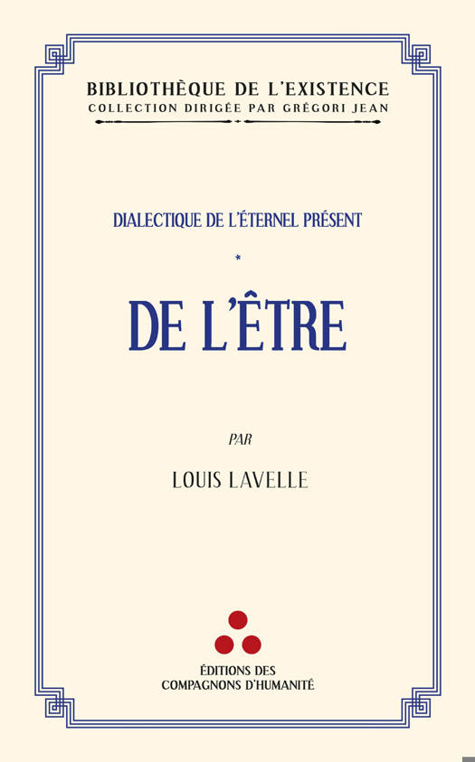 Par sa « Dialectique de l’éternel présent », Louis Lavelle engage une réflexion philosophique, inédite et radicale, qui vise à mettre au jour le mystère qui accompagne « la conscience de la vie ». Une telle conscience trouve sa source vive dans l’expérience partagée, permanente, bien qu’indicible, de « l’immédiation entre le moi et l’être, c’est-à-dire de ce pouvoir que j’ai de dire moi, ou de prendre contact avec l’être dans ma propre participation à l’être », et Louis Lavelle de reconnaître que « là a toujours été […] l’expérience primitive que toutes les autres spécifient. » Ainsi, face à l’étonnement premier de notre présence, s’ouvre une interrogation sur l’être, où l’auteur essaie « d’appréhender la notion de l’Être dans son extrême pureté ». Dès lors, la « Dialectique de l’Éternel Présent », dont les quatre premiers tomes ont été publiés — De l’Être , De l’Acte , Du Temps et de l’Éternité , De l’Âme humaine —et dont le cinquième, De la Sagesse , n’aura, en raison de la disparition de l’auteur, pu être rédigé, s’ouvre donc par la reconnaissance de la primauté de l’être et offre ainsi une base féconde à l’explicitation de l’existence comme telle.