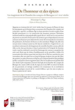 A travers l'exemple de la Chambre des comptes de Bretagne des années 1540 à la fin du règne de Louis XIV et surtout de l'étude de son personnel, cet ouvrage contribue à la connaissance de ces institutions et dégage quelques ressorts de la "société d'offices" qui s'est mise en place en France à partir du XVIe siècle.