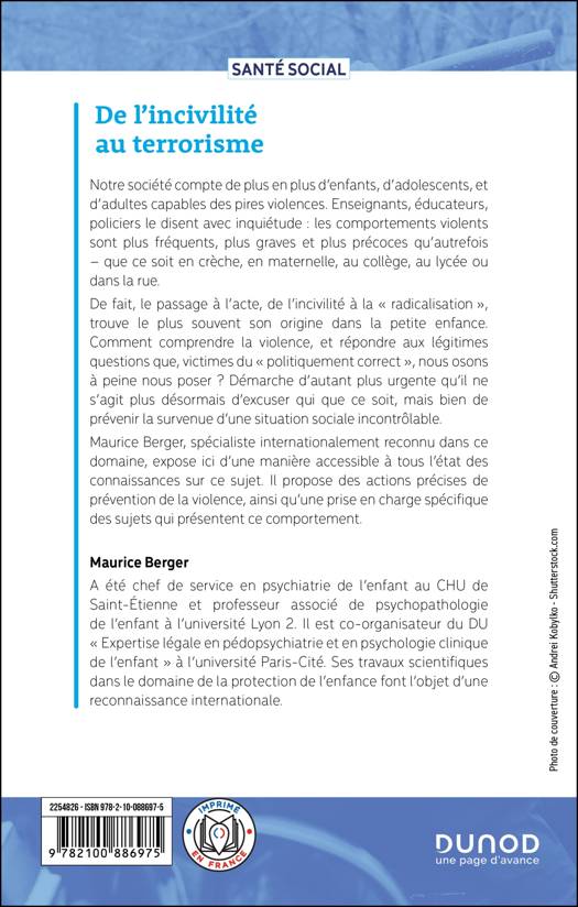 Maurice Berger, spécialiste internationalement reconnu dans ce domaine, expose ici d’une manière accessible à tous, l’état des connaissances sur ce sujet. Il propose des actions précises de prévention de la violence, ainsi qu’une prise en charge spécifique des sujets qui présentent ce comportement.