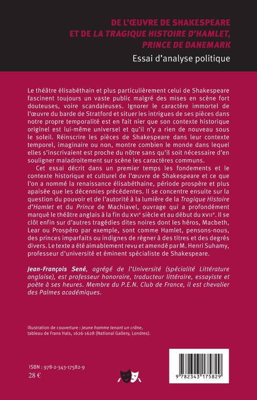 Le théâtre élisabéthain et plus particulièrement celui de Shakespeare fascine toujours un vaste public malgré des mises en scène fort douteuses, voire scandaleuses. Ignorer le caractère immortel de l'oeuvre du barde de Stratford et situer les intrigues de ses pièces dans notre propre temporalité est en fait nier que son contexte historique originel est lui-même universel et qu'il n'y a rien de nouveau sous le soleil. Réinscrire les pièces de Shakespeare dans leur contexte temporel, imaginaire ou non, montre combien le monde dans lequel elles s'inscrivaient est proche du nôtre sans qu'il soit nécessaire d'en souligner maladroitement sur scène les caractères communs. Le texte a été aimablement revu et amendé par M. Henri Suhamy, professeur d'université et éminent spécialiste de Shakespeare.