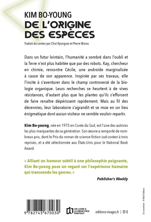 Un roman poétique et philosophique qui invite à adopter le point de vue de robots vivant dans une époque glaciaire et sur le point de découvrir l'existence de la vie organique. Par l'autrice multirécompensée de "L'odyssée des étoiles", sélectionnée pour le National Book Award, et pionnière de la SF en Corée.