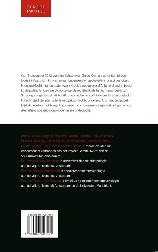 Op 16 december 2012 werd het lichaam van Guido Kremers gevonden bij een loods in Maastricht. Hij was zwaar toegetakeld en gedeeltelijk in brand gestoken. In de zoektocht naar de dader kwam Guido’s goede vriend Antonio al snel in beeld bij de politie. Antonio werd door zowel de rechtbank als het hof veroordeeld tot 24 jaar gevangenisstraf. Hij houdt tot op heden vol dat hij onterecht is veroordeeld. In het Project Gerede Twijfel is de zaak zorgvuldig onderzocht. Uit dat onderzoek blijkt dat veel van het bewijs is gebaseerd op dubieuze getuigenverklaringen en dat alternatieve scenario’s onvoldoende zijn onderzocht.