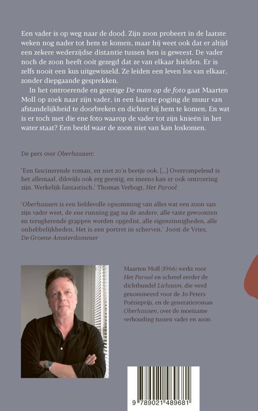 In het ontroerende en geestige De man op de foto gaat Maarten Moll op zoek naar zijn vader, in een laatste poging de muur van afstandelijkheid te doorbreken en dichter bij hem te komen. En wat is er toch met die ene foto waarop de vader tot zijn knieën in het water staat? Een beeld waar de zoon niet van kan loskomen.