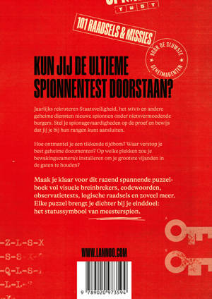 Maak je klaar voor dit razend spannende puzzelboek vol visuele breinbrekers, codewoorden, observatietests, logische raadsels en zoveel meer. Elke puzzel brengt je dichter bij je einddoel: het statussymbool van meesterspion.