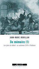 Dans ce premier volet « De mémoire », Jann-Marc Rouillan revient sur la fin de son adolescence, à Toulouse, en 1970. Les premiers amis, premières amours, premiers camarades, puis les premières armes ; mais aussi l’occasion de décrire une ville, une époque, des mœurs et des idéaux qui furent déterminants pour celui qui prendra bientôt le maquis contre la dictature franquiste.