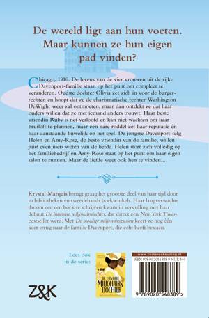 De levens van vier jonge vrouwen uit de rijke zwarte Davenport-familie in het Chicago van de jaren 1910 staan op het punt om compleet te veranderen. Ruby’s huwelijk wordt bedreigd door een roddel, Olivia vecht voor sociale gerechtigheid terwijl ze gedwongen wordt met een ander te trouwen, Amy-Rose keert terug naar haar oude liefde John, en Helen stort zich op het familiebedrijf om haar gebroken hart te vergeten. ‘De moedige miljonairszussen’ van Krystal Marquis is het tweede boek in de De dochters Davenport-serie, geïnspireerd op het waargebeurde verhaal van de familie Patterson. Voor de fans van Bridgerton!