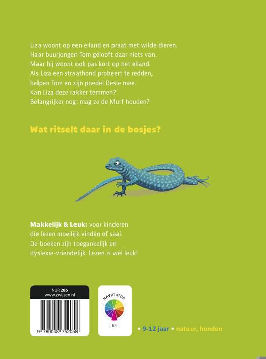 Met dieren praten, dat is leuk! Dat vind Liza ook, maar haar buurjongen Tom gelooft er niets van. Toch gaat hij met haar mee op avontuur. Ook een dierenvriend thuis? De Murf is een verhaal op AVI E4-niveau van Liliana Erasmus, speciaal voor kinderen tussen de 9 en 12 die lezen moeilijk vinden. Want lezen wordt pas echt leuk als het verhaal over een onderwerp gaat dat jij leuk vindt. De ‘Makkelijk en Leuk’ serie bevat boeken over aansprekende thema’s in eenvoudige taal. Heb je de kleurrijke illustraties van ivan & ilia al gezien? Op naar veel leesplezier!