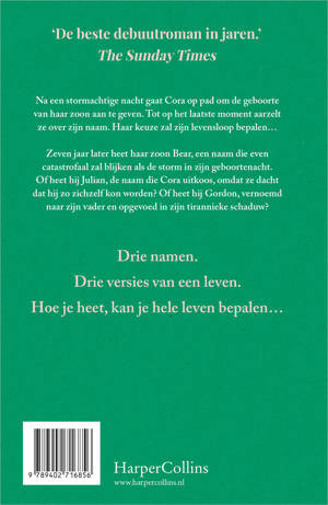 Zeven jaar later heet haar zoon Bear, een naam die even catastrofaal zal blijken als de storm in zijn geboortenacht. Of heet hij Julian, de naam die Cora uitkoos, omdat ze dacht dat hij zo zichzelf kon worden? Of heet hij Gordon, vernoemd naar zijn vader en opgevoed in zijn tirannieke schaduw?