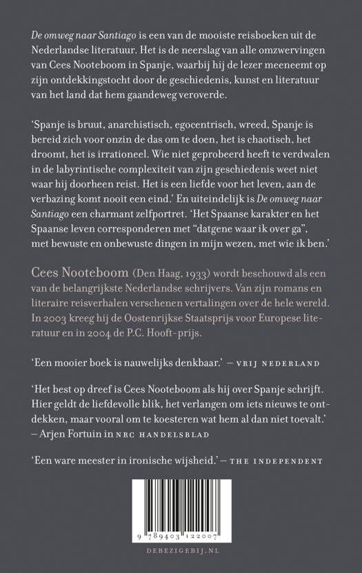 De omweg naar Santiago is een van de mooiste reisboeken uit de Nederlandse literatuur. Het is de neerslag van alle omzwervingen van Cees Nooteboom in Spanje, waarbij hij de lezer meeneemt op zijn ontdekkingstocht door de geschiedenis, kunst en literatuur van het land dat hem gaandeweg veroverde.