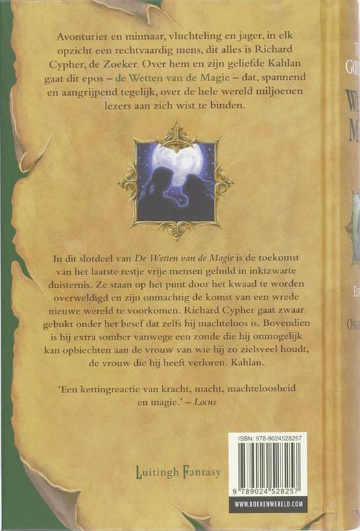 De Wetten van de Magie begon met de Eerste Wet. Dit epos, dat door de jaren heen miljoenen lezers aan zich wist te binden, wordt nu besloten met de Laatste Wet: de Wet der Wetten, de Ongeschreven Wet die sinds de dageraad van de geschiedenis niet meer is uitgesproken. Niet alleen is de ontknoping van dit daverende slotakkoord uitzonderlijk spannend, alle laatste vragen worden erdoor beantwoord.