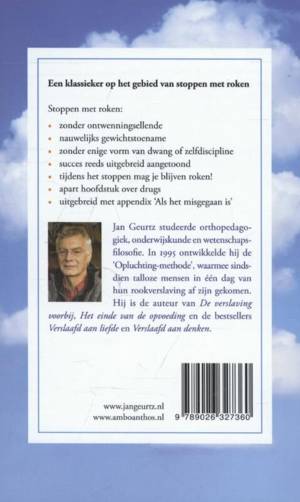 Jan Geurtz was zelf vijfentwintig jaar lang verstokt roker en heeft inmiddels met het boek De opluchting en via gelijknamige (groeps)trainingen uitgebreid aangetoond een succesvolle methode te hebben ontwikkeld om te stoppen met roken. Bij de 'opluchting-methode' gaat het er niet alleen om te weten, maar ook om te voelen dat je het roken niet meer nodig hebt. De methode zorgt ervoor dat je in één dag volledig bevrijd bent van het roken, zonder ontwenningsverschijnselen of noemenswaardige gewichtstoename.