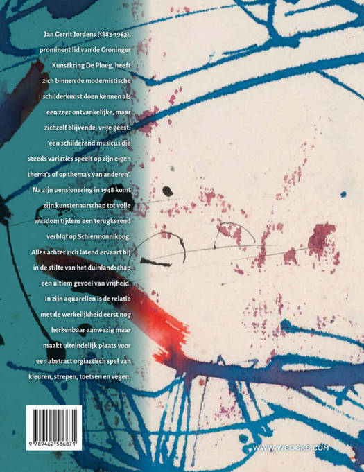 Jan Gerrit Jordens (1883-1962), prominent lid van de Groninger Kunstkring De Ploeg, heeft zich binnen de modernistische schilderkunst doen kennen als een zeer ontvankelijke, maar zichzelf blijvende, vrije geest: ‘een schilderend musicus die steeds variaties speelt op zijn eigen thema’s of op thema’s van anderen’. Na zijn pensionering in 1948 komt zijn kunstenaarschap tot volle wasdom tijdens een terugkerend verblijf op Schiermonnikoog. Alles achter zich latend ervaart hij in de stilte van het duinlandschap een ultiem gevoel van vrijheid. In zijn aquarellen is de relatie met de werkelijkheid aanvankelijk dan nog herkenbaar aanwezig maar maakt uiteindelijk plaats voor een abstract orgiastisch spel van kleuren, strepen, toetsen en vegen.