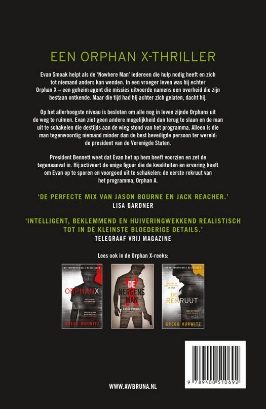 Het Orphan-project was in een ver verleden opgezet om de beste geheim agenten op te leiden die de Verenigde Staten ooit hebben gehad. Nu is echter op het allerhoogste niveau besloten om alle Orphans uit de weg te ruimen. Maar Evan Smoak – Orphan X – besluit terug te slaan. Zijn doelwit is niemand minder dan de man die destijds aan de wieg stond van het programma en die nu de best beveiligde persoon ter wereld is: de president van de Verenigde Staten.
