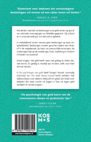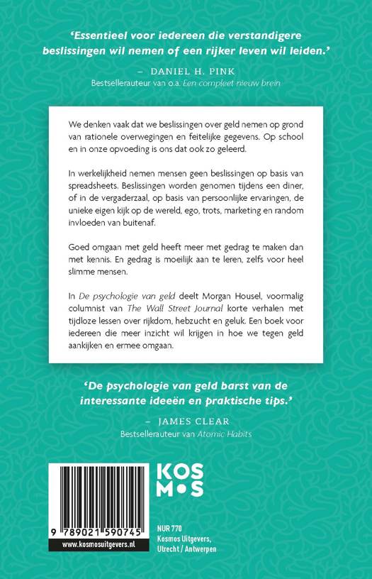 De psychologie van geld toont aan dat goed omgaan met geld niet per se gaat over wat je weet. Het gaat om gedrag, en dat is moeilijk aan te leren. Mensen nemen financiële beslissingen niet op basis van spreadsheets, maar aan de eettafel of in een vergaderruimte, waar persoonlijke ervaringen, ego, trots, marketing en prikkels van buitenaf samenkomen. Voormalig columnist van The Wall Street Journal Morgan Housel deelt korte verhalen met tijdloze lessen over rijkdom, hebzucht en geluk.