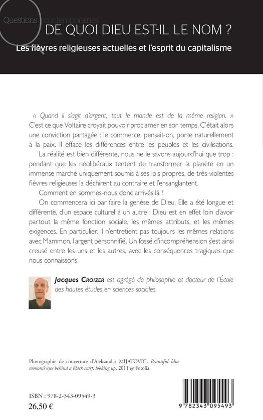 "Quand il s'agit d'argent, tout le monde est de la même religion." La réalité est bien différente aujourd'hui. Alors que les néolibéraux tentent de transformer la planète en un immense marché soumis à ses lois propres, de très violentes fièvres religieuses la déchirent au contraire et l'ensanglantent. Pour comprendre comment nous en sommes arrivés là, l'auteur commence par faire la genèse de Dieu. D'un espace culturel à un autre, un fossé d'interprétations, sur l'argent notamment, s'est creusé.