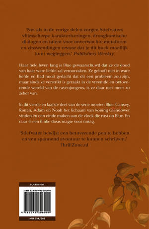 In dit vierde en laatste deel van de serie moeten Blue, Gansey, Ronan, Adam en Noah het lichaam van koning Glendower vinden én een einde maken aan de vloek die rust op Blue. En daar is een flinke dosis magie voor nodig.