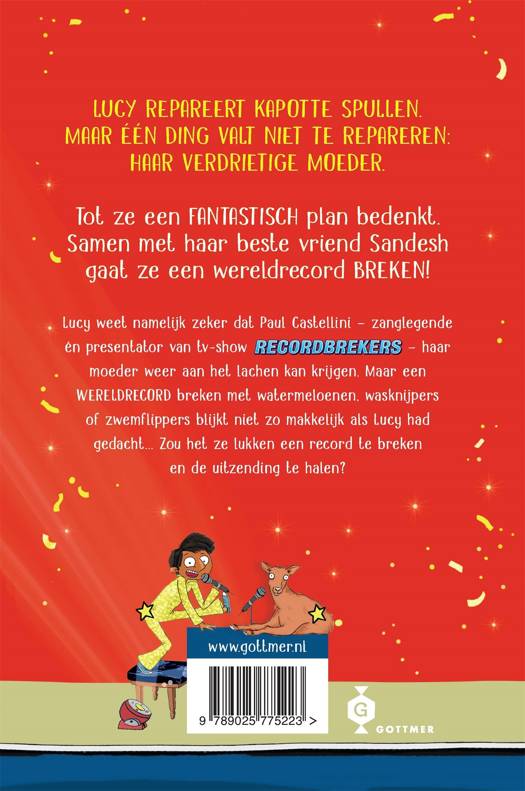 Lucy repareert kapotte spullen. Maar één ding valt niet te repareren: haar ongelukkige moeder. Dan komt ze op het geweldige idee om samen met haar beste vriend Sandesh een wereldrecord te breken tijdens de tv-show De recordbrekers. Ze zal Paul Castellini, presentator van 'De recordbrekers' én zingende legende, vragen om bij hen langs te komen, want hij kan haar moeder vast en zeker weer aan het lachen krijgen. Lucy en Sandesh gaan op zoek naar een record dat ze samen kunnen breken, en hun pogingen met watermeloenen, knijpers, snorkel en flippers leiden tot hilarische situaties. Het blijkt lastiger dan verwacht...