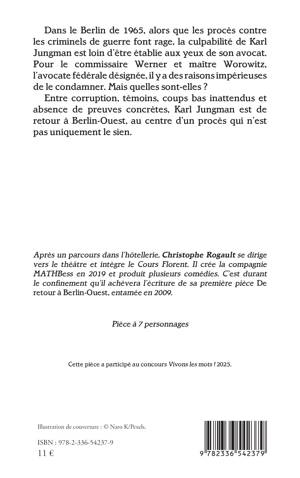 Dans le Berlin de 1965, alors que les procès contre les criminels de guerre font rage, la culpabilité de Karl Jungman est loin d'être établie aux yeux de son avocat. Pour le commissaire Werner et maître Worowitz, l'avocate fédérale désignée, il y a des raisons impérieuses de le condamner. Mais quelles sont-elles ? Entre corruption, témoins, coups bas inattendus et absence de preuves concrètes, Karl Jungman est de retour à Berlin-Ouest, au centre d'un procès qui n'est pas uniquement le sien.