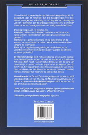 Verne Harnish is expert op het gebied van strategische groei. Uitgangspunt voor dit handboek zijn drie basisprincipes voor succesvol management, afkomstig uit de biografie van oliemagnaat John D. Rockefeller, ooit de rijkste zakenman in de VS, die Harnish uitwerkte tot een managementtool voor snelgroeiende bedrijven. De drie principes van Rockefeller zijn: Prioriteiten: hebben we duidelijke prioriteiten voor de korte en lange termijn? Heeft iedereen zijn eigen prioriteiten daarop afgestemd? Informatie: is er genoeg informatie om de performance en de wensen van onze klanten te peilen? Werkt iedereen ook met en volgens die informatie? Ritme: zijn er regelmatig vergaderingen om de koers en de verantwoordelijkheden scherp te houden? Worden die effectief en zinvol gehouden?