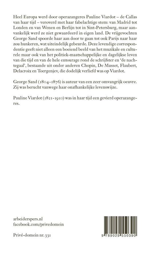 Heel Europa werd door operazangeres Pauline Viardot – de Callas van haar tijd – veroverd met haar fabelachtige stem: van Madrid tot Londen en van Wenen en Berlijn tot in Sint-Petersburg, maar aanvankelijk werd ze niet gewaardeerd in eigen land. De vrijgevochten George Sand spoorde haar aan door te gaan tot ook Parijs naar haar zou hunkeren, wat uiteindelijk gebeurde. Deze levendige correspondentie geeft niet alleen een boeiend beeld van het muzikale en culturele maar ook van het politiek-maatschappelijke en dagelijkse leven en van de hele entourage rond de schrijfster en ‘de nachtegaal’.