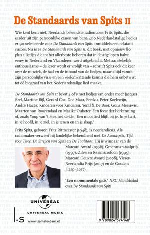 Frits Spits is een van de bekendste radiomakers van Nederland. Generaties jongeren groeiden op met De Avondspits. Uit bijna 400 Nederlandstalige liedjes - zijn persoonlijke canon - selecteerde Spits er 90 voor De Standaards van Spits, inmiddels een eclatant succes. Nu is er De Standaards van Spits II. Net zo bevlogen als in de eerste Standaards schrijft Spits over muziek, over taal, over inhoud, niet zelden gelardeerd met een miniportret van de betreffende artiest en zijn persoonlijke herinneringen.