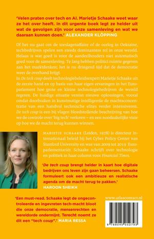 In De tech coup deelt technologiebeleidsexpert Marietje Schaake uit de eerste hand en op basis van haar eigen ervaringen in het Europarlement hoe grote en kleine technologiebedrijven de wereld regeren. De huidige situatie vereist nieuwe oplossingen, vooral omdat doorbraken in kunstmatige intelligentie de machtsconcentratie van een handvol technische elites verder intensiveren.