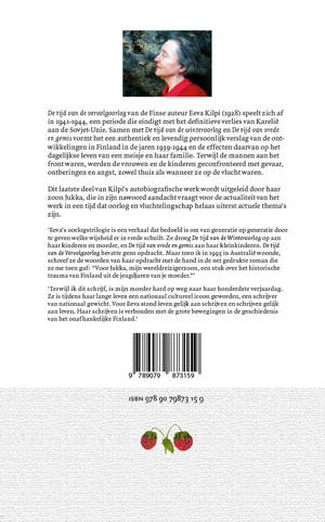 Dit laatste deel van Kilpi’s autobiografische werk wordt uitgeleid door haar zoon Jukka, die in zijn nawoord aandacht vraagt voor de actualiteit van het werk in een tijd dat oorlog en vluchtelingschap helaas uiterst actuele thema’s zijn.