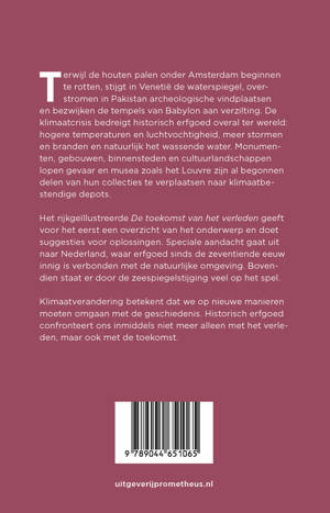 De klimaatcrisis bedreigt historisch erfgoed overal ter wereld, met hogere temperaturen, meer stormen en branden en natuurlijk het wassende water. Monumenten, gebouwen, binnensteden en cultuurlandschappen lopen gevaar, en musea zoals het Louvre zijn al begonnen delen van hun collecties te verplaatsen naar klimaatbestendige depots. De toekomst van het verleden geeft voor het eerst een overzicht van dit urgente onderwerp en doet suggesties voor oplossingen. Speciale aandacht gaat naar Nederland, waar erfgoed sinds de zeventiende eeuw innig is verbonden met de natuurlijke omgeving. Bovendien staat er door de zeespiegelstijging veel op het spel.