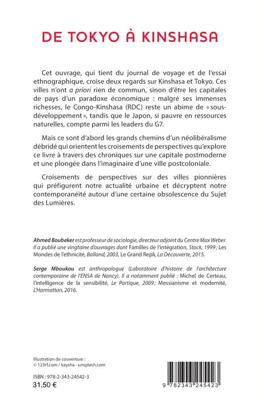 Cet ouvrage, qui tient du journal de voyage et de l’essai ethnographique, croise deux regards sur Kinshasa et Tokyo. Ces villes n’ont a priori rien de commun, sinon d’être les capitales de pays d’un paradoxe économique : malgré ses immenses richesses, le Congo-Kinshasa (RDC) reste un abime de « sous développement », tandis que le Japon, si pauvre en ressources naturelles, compte parmi les leaders du G7. Mais ce sont d’abord les grands chemins d’un néolibéralisme débridé qui orientent les croisements de perspectives qu’explore ce livre à travers des chroniques sur une capitale postmoderne et une plongée dans l’imaginaire d’une ville postcoloniale. Croisements de perspectives sur des villes pionnières qui préfigurent notre actualité urbaine et décryptent notre contemporanéité autour d’une certaine obsolescence du Sujet des Lumières.