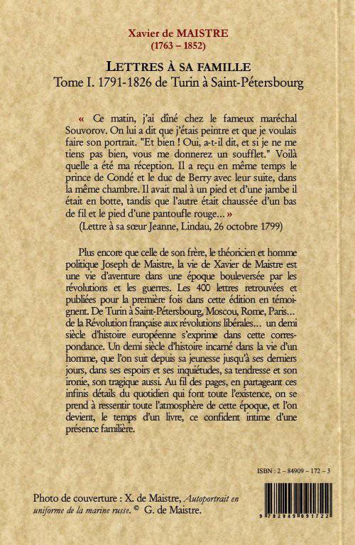 Lettres inédites de Xavier de Maistre. Edition et présentation Gabriel de Maistre. Préface de J.-L. Darcel. Edition annotée ; accompagnée de 10 cartes et 16 illustrations.