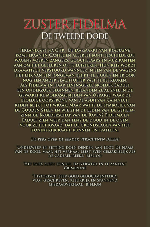 Ierland, 671 na Chr. De grote jaarmarkt van Bealtaine komt eraan in Cashel en een rij van bont beschilderde wagens voert zangers, goochelaars en muzikanten aan om het gebeuren op te luisteren. Maar hun reis wordt dramatisch verstoord wanneer in een van de wagens het lijk van een jongeman blijkt te liggen en er ook nog een ander slachtoffer valt te betreuren. Als Fidelma en haar levensgezel broeder Eadulf een onderzoek beginnen, belanden ze al snel in de gevaarlijke moerasgebieden van Osraige, waar de bloedige oorsprong van de abdij van Cainnech reden blijkt tot wraak. Maar wat is de symboliek van de Gouden Steen en wie zijn de leden van de geheimzinnige Broederschap van de Raven? Fidelma en Eadulf zien meer dan eens de dood in de ogen voor ze het kwaad, dat de grondslagen van het koninkrijk raakt, kunnen ontrafelen.