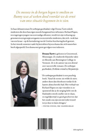 Donna Tartt volgt in haar erudiete en bedwelmende debuutroman enkele studenten die door hun eigen morele hoogmoed ten val komen. Richard Papen, een ingetogen jongen van eenvoudige afkomst, wordt tot zijn verbazing opgenomen in een groepje arrogante en excentrieke studenten, dat zich – in de ban van een leraar – op de bestudering van de Griekse beschaving heeft gestort. In het tweede semester raakt hij betrokken bij een drama dat zich tussen hen heeft afgespeeld. Een drama met grote gevolgen voor iedereen.