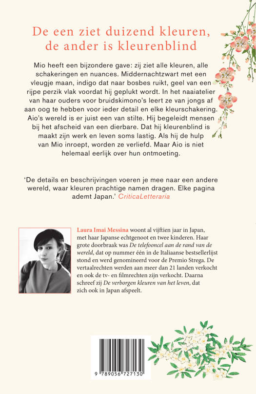 Mio heeft een bijzondere gave: zij ziet alle kleuren, alle schakeringen en nuances. Middernachtzwart met een vleugje maan, indigo dat naar bosbes ruikt, geel van een rijpe perzik vlak voordat hij geplukt wordt. In het naaiatelier van haar ouders voor bruidskimono’s raakt ze steeds bedrevener in het aanraden van de juiste kleur voor de mooiste dag in het leven.