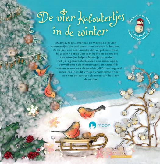 Maartje, Joep, Johannes en Moontje zijn vier kaboutertjes die veel avonturen beleven in het bos. Zo helpen ze een eekhoorntje dat vergeten is waar hij al zijn nootjes verstopt heeft en helpen de andere kaboutertjes Moontje als ze door het ijs is gezakt. Ze bouwen sneeuwpoppen en natuurlijk houden ze ook een sleewedstrijd. Dit en nog veel meer lees je in dit vrolijke voorleesboek over een van de leukste seizoenen van het jaar: de winter!
