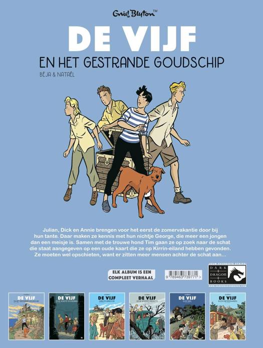 hun tante. Daar maken ze kennis met hun nichtje George, die meer een jongen dan een meisje is. Samen met de trouwe hond Tim gaan ze op zoek naar de schat die staat aangegeven op een oude kaart die ze op Kirrin-eiland hebben gevonden. Ze moeten wel opschieten, want er zitten meer mensen achter de schat aan...