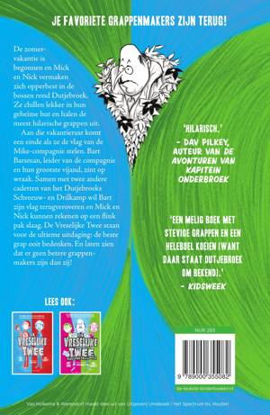 De favoriete grappenmakers en oprichters van de Internationale Orde van de Wanorde zijn er weer! Mick en Nick gaan op zomerkamp, naar het vreselijk vriendelijke Camp Good Times, waarbij alles draait om vrede en goede vibes (oftewel: BOR-ING!). Doordat ze geen enkele mogelijkheid zien om een goede prank uit te halen, zien de Vreselijke Twee ab-so-luut niet in wat er nu zo goed is aan dit kamp. Maar dan breken kinderen uit het nabijgelegen Yelling and Push-Ups Camp in bij Camp Good Times en stelen ze de supergeheime snoepvoorraad. Iedereen is boos - en die malle expertise van Mick en Nick is meer dan gewenst! Ze breken met de vrolijke feelgood feelings van hun eigen kamp, maar kunnen hun sluwe geest en hechte vriendschap op tegen de vuisten van de rivaliserende campers?