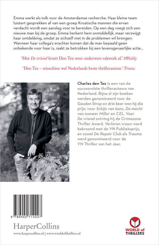 Emma werkt als tolk voor de Amsterdamse recherche. Haar kleine team luistert gesprekken af van een groep Kroatische mannen die ervan verdacht wordt een aanslag voor te bereiden. Op een dag voegt zich een nieuwe man bij de groep. Emma herkent hem onmiddellijk, maar verzwijgt haar ontdekking, omdat ze zichzelf niet in de problemen wil brengen. Wanneer haar collega’s erachter komen dat de man bepaald geen onbekende voor haar is, raakt Emma betrokken bij een levensgevaarlijke actie.