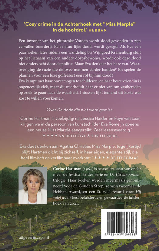 Een inwoner van het pittoreske Vorden wordt dood gevonden in een afgelegen boerderij. Een natuurlijke dood, wordt gezegd. Als Eva een paar weken later tijdens een wandeling bij Wijngoed Kranenburg stuit op het lichaam van een andere dorpsbewoner, wordt ook deze dood niet onderzocht door de politie. Maar Eva denkt er het hare van en gaat op onderzoek uit. Waarover ging de ruzie eigenlijk die de twee mannen eerder hadden? En spelen de plannen voor een luxe golfresort een rol bij hun dood?
