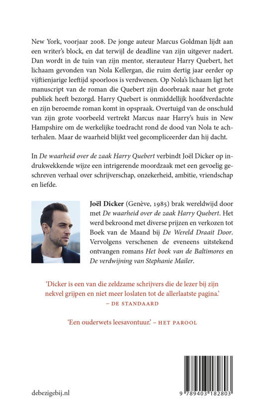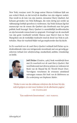 De waarheid over de zaak Harry Quebert verbindt Joël Dicker op indrukwekkende wijze een intrigerende moordzaak met een gevoelig geschreven verhaal over schrijverschap, onzekerheid, ambitie, vriendschap en liefde.