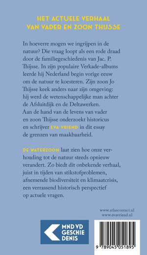 Aan de hand van de levens van vader en zoon Thijsse onderzoekt Eva Vriend in dit essay de grenzen van maakbaarheid. 'De waterzoon' laat zien hoe onze verhouding tot de natuur steeds opnieuw verandert. Zo biedt dit onbekende verhaal, juist in tijden van stikstofproblemen, afnemende biodiversiteit en klimaatcrisis, een verrassend historisch perspectief op actuele vragen.