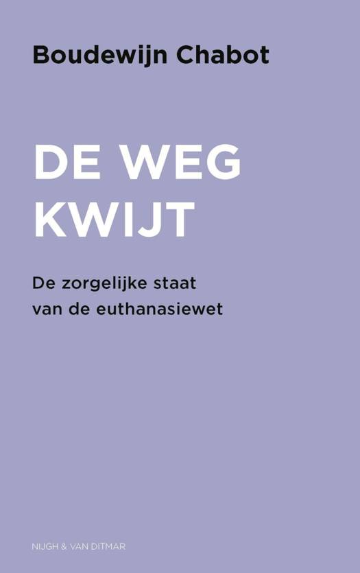 De acceptatie van euthanasie bij allerlei nare lichamelijke ziekten is enorm toegenomen. In De weg kwijt legt Boudewijn Chabot de schaduwkant hiervan onder een vergrootglas. 25 jaar geleden stond Chabot al voor de rechtbank pal voor zelfbeschikking over het levenseinde. Maar nu euthanasie ook bij dementie en psychiatrie snel toeneemt, roept hij op tot bezinning. Deze kwetsbare patiënten krijgen onvoldoende zorg en behandeling, waardoor hun angst voor het leven en het verlangen naar de dood toenemen. Hun hersenziekten tasten het vermogen aan om zelfstandig te beslissen. Ze horen dat euthanasie bij ongeneeslijke lichamelijke ziekten een oplossing kan zijn, en dat ook zíj om euthanasie kunnen vragen bij de levenseindekliniek. Hoogleraar Anne-Mei The valt Chabot bij en demonstreert in haar Proeftuin Dementie hoe je anders kunt omgaan met de angst voor dementie. Hoogleraar Jim van Os legt uit hoe het komt dat psychiatrische behandeling geen hoop meer biedt aan mensen die worstelen met de dood.