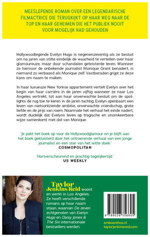 Nederlandse editie Hollywoodfilm-icoon Evelyn Hugo is negenenzeventig als ze besluit om na jaren van stilte eindelijk de waarheid te vertellen over haar glamoureuze, maar door schandalen geteisterde leven. Wanneer ze hiervoor de onbekende reporter Monique Grant benadert, is niemand zo verbaasd als Monique zelf. Vastberaden grijpt ze deze kans om naam te maken. In het luxueuze New Yorkse appartement van Evelyn luistert Monique gefascineerd naar haar verhaal. Over het begin van haar carrière in de jaren vijftig wanneer ze naar Los Angeles trekt, tot aan haar onverwachte besluit om de spotlights de rug toe te keren in de jaren tachtig. Evelyn openbaart een leven van nietsontziende ambitie, onverwachte vriendschap, grote liefde en de prijs van roem. De band tussen de twee vrouwen wordt steeds sterker, en naarmate het verhaal het einde nadert, wordt duidelijk dat Evelyns leven op tragische en onomkeerbare wijze samenkomt met dat van Monique. De zeven echtgenoten van Evelyn Hugo is een betoverende reis, van de grandeur van het Hollywood van de jaren zestig tot aan de hedendaagse, harde realiteit, waarin twee vrouwen worstelen met de onontkoombare gevolgen van gebeurtenissen uit het verleden. Het is een verhaal over meedogenloze ambitie, onverwachte vriendschap en een grote, verboden liefde, geïnspireerd op de levens van Hollywood-diva's Elizabeth Taylor en Ava Gardner. 'Een heerlijk boek over een dame wier leven niet zo is gelopen zoals ze had gewild. Met een heerlijke plottwist. Echt een aanrader.' – LINDA.nl 'Een flinke dosis dramatiek, creativiteit, menselijkheid en voldoende plotwendingen. Een femme fatale in boekvorm!' – Humo 'Prachtroman.' - Margriet 'Je pakt het boek op voor de Hollywoodglamour en je blijft aan het boek gekluisterd door het ontroerende verhaal van een jonge journalist en een ster van het witte doek.' – Cosmopolitan 'Adembenemend, hartverscheurend en vol Old Hollywoodgrandeur; een van de aantrekkelijkste romans van het jaar.' – Buzzfeed 'Een roman die de Marilyn Monroe en Elizabeth Taylor in eenieder van ons aanspreekt!' – Kirkus Reviews 'Als je van glitter en glamour houdt en oud-Hollywood, zit je helemaal goed met dit boek. In De zeven echtgenoten van Evelyn Hugo lees je over Hollywoodfilm-icoon Evelyn, die inmiddels 79 is.' - Trendalert