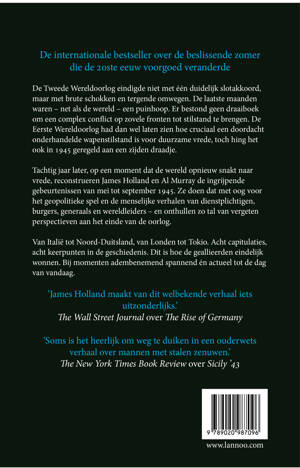 Tachtig jaar later, op een moment dat de wereld opnieuw snakt naar vrede, reconstrueren James Holland en Al Murray de ingrijpende gebeurtenissen van mei tot september 1945. Ze doen dat met oog voor het geopolitieke spel en de menselijke verhalen van dienstplichtigen, burgers, generaals en wereldleiders – en onthullen zo tal van vergeten perspectieven aan het einde van de oorlog.
