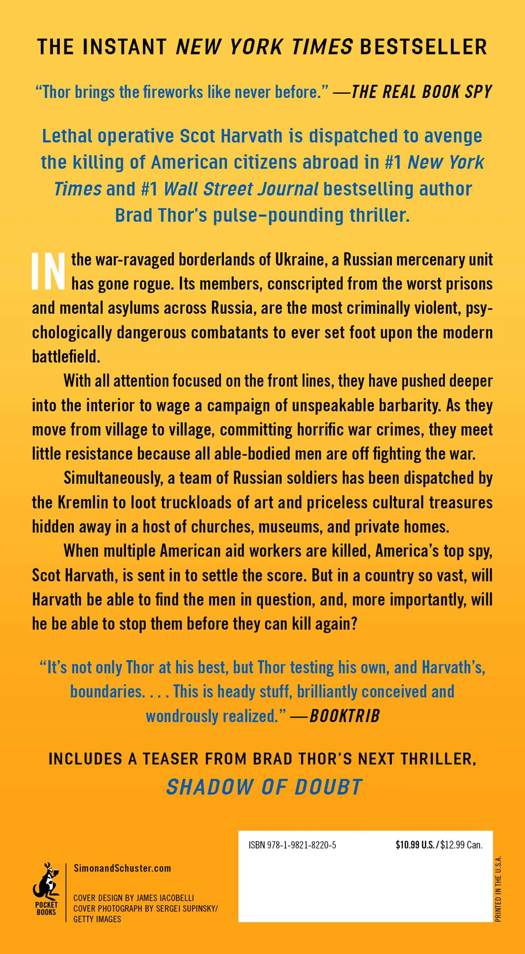 Lethal operative Scot Harvath is dispatched to avenge the killing of American citizens abroad in #1 New York Times and #1 Wall Street Journal bestselling author Brad Thor’s new pulse-pounding thriller.