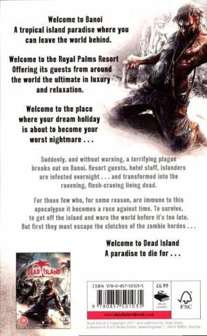 Welcome to Banoi, a tropical island where you can leave the stresses of the world behind. The Royal Palms Resort offers its guests from around the world the ultimate in luxury and relaxation, a holiday paradise where your dreams should come true--but where a nightmare is about to begin. A mysterious epidemic has suddenly, and without warning, broken out across the island. The local islanders, hotel guests, and workers alike are struck down--only to rise again, craving the flesh and the blood of the still living. For four of the vacationers and a handful of others scattered around Banoi who are seemingly unaffected by the plague, they must face the awful, terrifying reality of a zombie apocalypse. Now there is only one thing left to do: survive. Welcome to Dead Island--a paradise to die for.