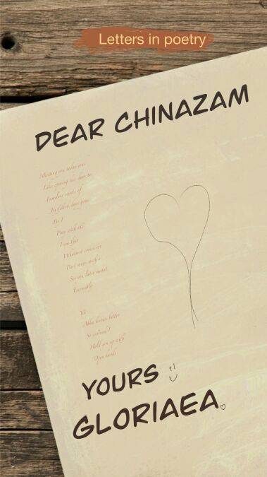 Dear Chinazam explores life as chapters in a friendship. It reflects on meetings, greetings, wounds and forgiveness. It is a mirror to the mundane and a celebration of the everyday. It is written as a companion to life and a challenge of the status quo.