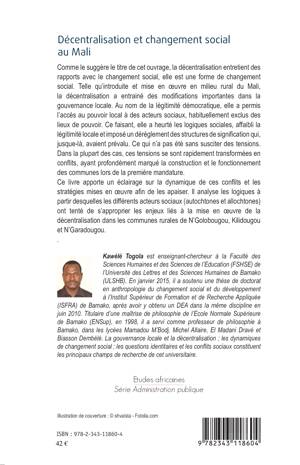 La décentralisation a entraîné des modifications importantes dans la gouvernance locale. Elle a permis l'accès au pouvoir local à des acteurs sociaux habituellement exclus des lieux de pouvoir. Ce faisant en heurtant les logiques sociales, la légitimité locale s'en est trouvée affaiblie. Voici un éclairage sur la dynamique de ces conflits et les stratégies mises en oeuvre afin de les apaiser.